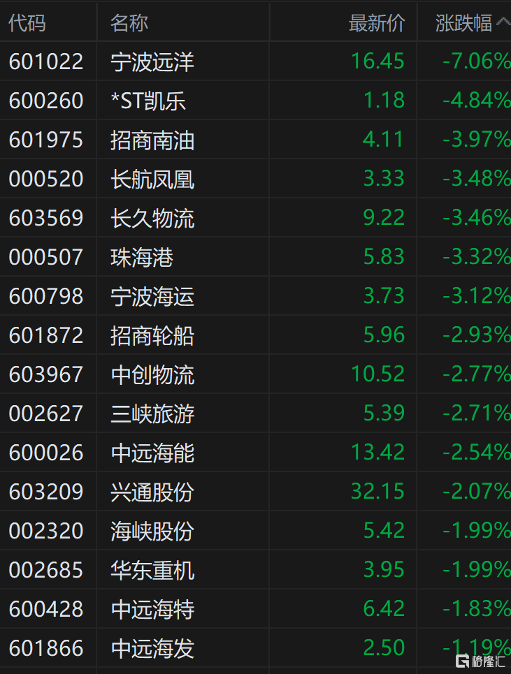 格隆汇12月19日丨航运板块震荡走低,宁波远洋跌超7%,长航凤凰、招商南油、珠海港、招商轮船、锦州港等跟跌。